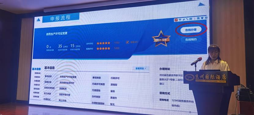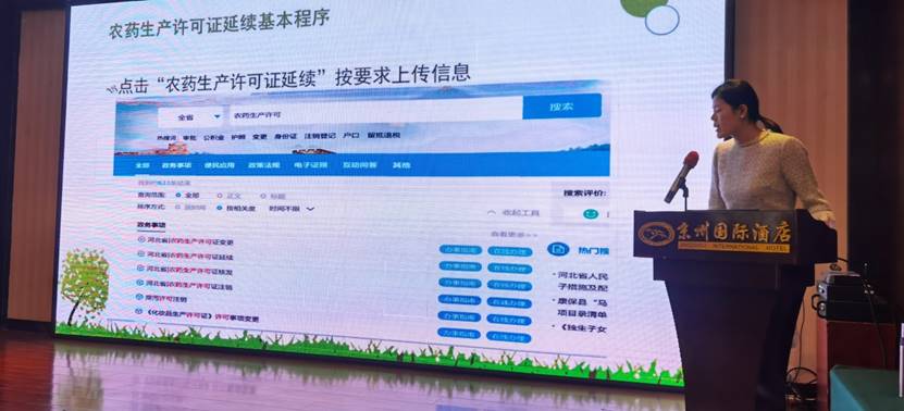河北省農(nóng)藥檢定監(jiān)測(cè)總站高夢(mèng)琪科長(zhǎng)為大家詳細(xì)講解了申報(bào)流程、農(nóng)藥生產(chǎn)經(jīng)營(yíng)許可申報(bào)常見(jiàn)問(wèn)題及限制使用農(nóng)藥經(jīng)營(yíng)許可延續(xù)有關(guān)要求。