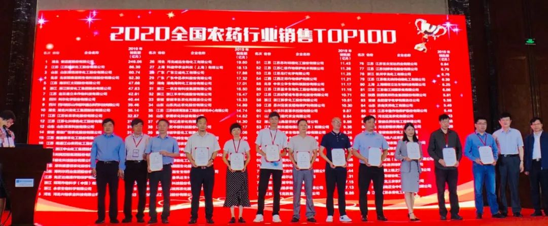 6月10日,山東青島,2020全國農(nóng)藥行業(yè)銷售TOP100在第七屆農(nóng)藥行業(yè)經(jīng)濟(jì)運(yùn)行分析會暨農(nóng)藥行業(yè)排行榜發(fā)布會上隆重揭曉。安道麥股份有限公司以249.06億元的銷售額蟬聯(lián)榜首。江蘇揚(yáng)農(nóng)化工股份有限公司連升3名,以86.39億元的銷售額排名第二,山東濰坊潤豐化工股份有限公司以60.74億元的銷售額排名第三。