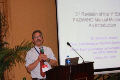 Ralf Hänel博士,系統(tǒng)介紹CIPAC的目標(biāo)、運(yùn)營概況、平臺建設(shè)和印刷刊物以及與AOAC、ASTM、FAO/WHO、EFSA、AgroCare、CropLife和FASA等組織的合作關(guān)系。目前,CIPAC下屬農(nóng)藥咨詢委員會有中國、德國、英國和日本,主要職責(zé)是準(zhǔn)備和討論聯(lián)合實驗和小型試驗的方法。他著重向參會代表解釋了如何建立和驗證CIPAC方法、方法擴(kuò)展的要求,并舉例介紹德國BVL工作組---DAPA和DAPF的目標(biāo)、工作職責(zé)、成員單位、方法開發(fā)時間表等,可指導(dǎo)剛成立的CHIPAC更好地開展和規(guī)劃未來行動計劃,有著很好的借鑒和學(xué)習(xí)意義。