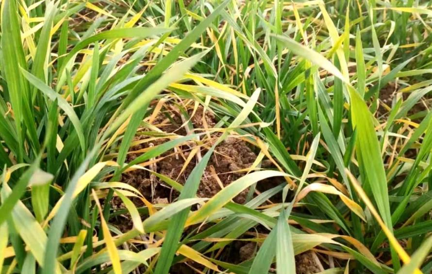 2、前茬作物秸稈不規范還田造成“吊根苗”引起發黃。小麥黃根多,白根少,植株因得不到足夠的水分和養分,再加上強寒潮的侵襲,造成麥苗發黃。這種發黃,往往是心葉稍輕,老葉更黃;在田間是一行一片的,或一窩一塊的,分布不均勻。