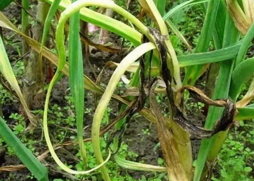 常見的有根腐病、軟腐病,這兩個病害都是導致爛根的主要病菌。尤其重茬地塊更嚴重。大蒜產區連續種植大蒜的重茬地普遍在,致使大蒜的病害發生嚴重,直接影響著大蒜的品質和產量。其次對害蟲管理不及時也會引發病害侵染,導致爛根。如地老虎、螻蛄、蠐螬、韭蛆、薊馬等害蟲危害后也會導致病菌侵染。