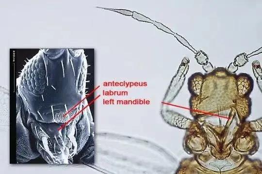 薊馬口器為典型的不對稱式,介于咀嚼式口器與刺吸式口器之間,為銼吸式口器。
