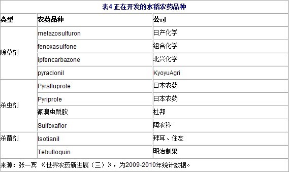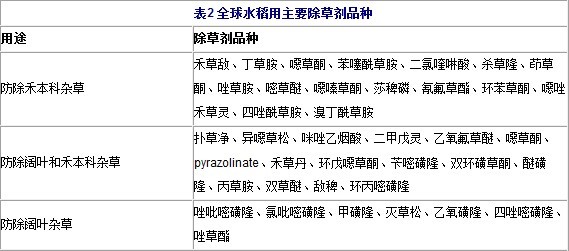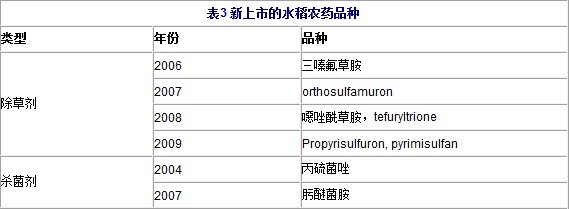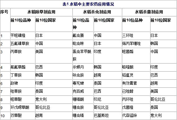 水稻上農藥應用情況如下:
