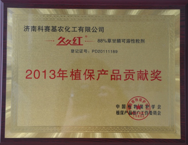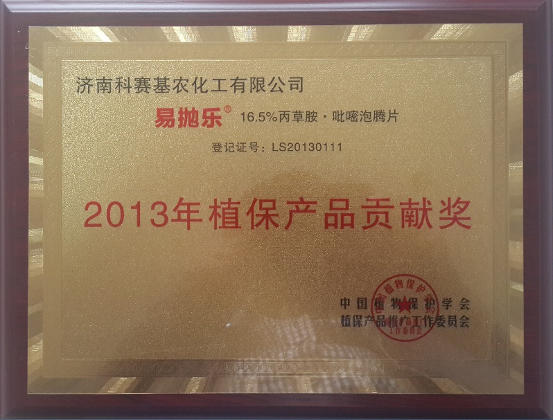 近日,濟(jì)南科賽基農(nóng)化工有限公司的久久紅(88%草甘膦可溶性粒劑)、易拋樂(16.5%丙草胺吡嘧泡騰片)榮獲“2013年植保產(chǎn)品貢獻(xiàn)獎”,同時科賽基農(nóng)作物經(jīng)理蘇躍同志被授予“2013年植保產(chǎn)品推廣獎”。這項有著“植保界奧斯卡獎”盛宴,由來自農(nóng)業(yè)部農(nóng)藥檢定所、全國農(nóng)技推廣中心、中國植物保護(hù)學(xué)會以及來自地方植保系統(tǒng)的22位專家參與評審,最終47家企業(yè)和61個產(chǎn)品獲獎。