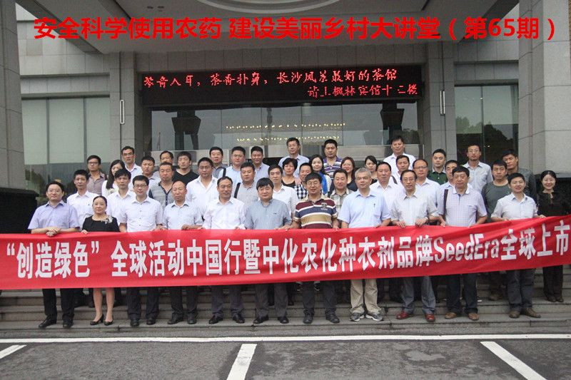 9月15日,由中國農藥工業協會和中化農化有限公司共同召開的“安全科學使用農藥,建設美麗鄉村大講堂第65期--中化農化‘創造綠色’全球活動中國行暨中化農化種衣劑SeedEraTM品牌全球上市會”在湖南長沙成功舉行。中國農藥工業協會孫叔寶會長、中國農業科學院王振營研究員、北京登海種業總經理呂楠博士、中種集團水稻事業部副總經理曾建強、湖南洞庭高科種業有限公司廖建民總經理、沈陽化工研究院丑靖宇教授等領導和專家出席會議。此次活動吸引了來自30余家種業公司,近60位代表參加。