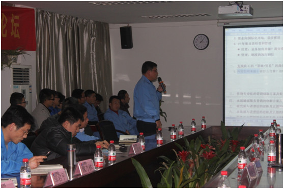 作為上游鏈條,原藥公司總經(jīng)理劉鵬就匯和化工未來3-5年的戰(zhàn)略發(fā)展規(guī)劃做出詳細(xì)報(bào)告,他提出“基地+貿(mào)易”商業(yè)模式的打造方案,如何形成基地和貿(mào)易相互促進(jìn)、相互關(guān)聯(lián),在此布局下完善產(chǎn)業(yè)鏈,并拼接終端貿(mào)易市場,為完成年產(chǎn)值10億元展開鋪墊工作。