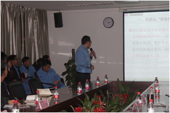 百美達(dá)總經(jīng)理史高宏就百美達(dá)縣級中心店+服務(wù)站模式和推進(jìn)計(jì)劃作出闡述。他明確:以自建縣級中心店模式進(jìn)行網(wǎng)絡(luò)建設(shè),發(fā)展鄉(xiāng)鎮(zhèn)及村級服務(wù)站網(wǎng)絡(luò),進(jìn)一步發(fā)揮公司和農(nóng)戶的橋梁作用,在此基礎(chǔ)上展開和推進(jìn)對種植大戶及合作社開發(fā)計(jì)劃,在產(chǎn)品銷售的基礎(chǔ)上同時發(fā)展服務(wù)模式,提供專業(yè)化包田包藥服務(wù),整合力量組織機(jī)械化施藥、收割等產(chǎn)前、產(chǎn)中、產(chǎn)后的全程綜合服務(wù)。