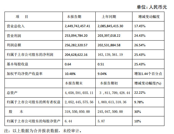 輝豐農化昨日發布2014年度業績快報,報告期內實現營業收入24.49億元,同比增長17.49%,實現利潤總額及歸屬于上市公司股東的凈利潤分別為2.56億元、2.05億元,較上年分別增長26.54%、25.43%。