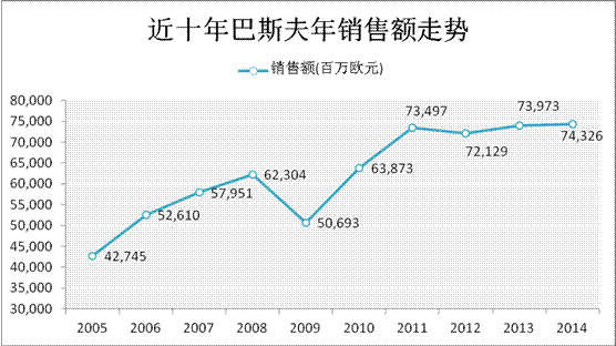 2014年巴斯夫全年銷售額為743 億歐元,與上一年基本持平(2013:740 億歐元)。.本年度所有業(yè)務(wù)領(lǐng)域的銷售量都增加,整體銷售量增長(zhǎng)4%。由于石油與天然氣價(jià)格跳水,銷售價(jià)格下降3%。匯率因素幾乎對(duì)所有業(yè)務(wù)部的銷售額都形成了不利影響。