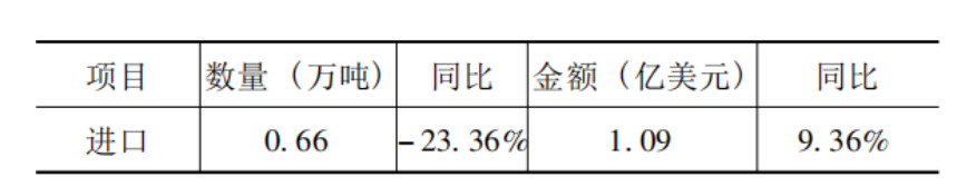 從原藥、制劑看,進口原藥同比雙降,制劑同比雙增。原藥進口數量為0.23萬噸,同比下降66.09%,進口金額為0.47億美元,同比下降37.94%;制劑進口數量為0.43萬噸,同比增長126.08%;進口金額為0.62億美元,同比增長156.86%。