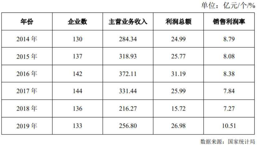 根據國家統計局數據,近年來我國生物農藥行業,規模以上企業(年產值2000萬元以上)的主營業務收入、利潤總額、銷售利潤率情況如下: