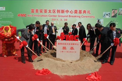2011年3月30日,中國上海—世界著名的多元化化學企業富美實(FMC)公司今天在上海浦東新區張江高科技園區為其亞太區總部及創新中心舉行了隆重的奠基典禮。該創新中心將有望于2012年建成并投入使用,作為整個亞太區投資最大的研發、創新基地,該中心將致力于為富美實(FMC)亞洲及全球業務提供研發、技術創新和營運支持。