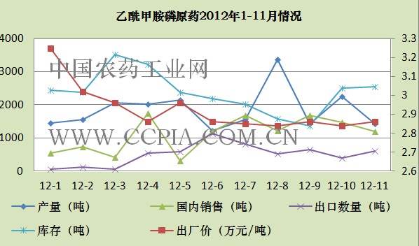據中國農藥工業網統計的11家乙酰甲胺磷原藥生產企業, 10月、11月份開工企業均為3家。