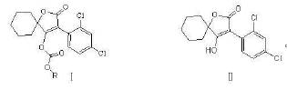 本發(fā)明涉及一種新型螺螨酯類化合物及其合成方法與應(yīng)用,該螺螨酯類化合物的結(jié)構(gòu)如通式Ⅰ所示。其合成方法為在縛酸劑存在下,于非質(zhì)子性溶劑中,室溫條件下使結(jié)構(gòu)式為Ⅱ的化合物與結(jié)構(gòu)式為的氯甲酸酯反應(yīng),產(chǎn)物經(jīng)分離提純制得。本發(fā)明的螺螨酯類化合物可用于殺蟲或殺螨。