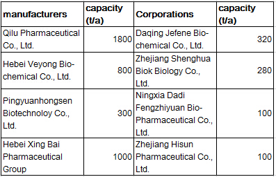 The main corporations of abamectin powder and its capacity (t/a)
