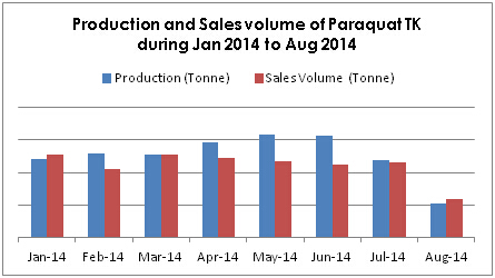 According to CCPIA Monthly Bulletin of Statistics of China Pesticides, in Aug, VWAP of paraquat TK increased by $283 per tonne than that of Jul, till now paraquat price has been increasing for three months in a row, although the growths are not obvious.
