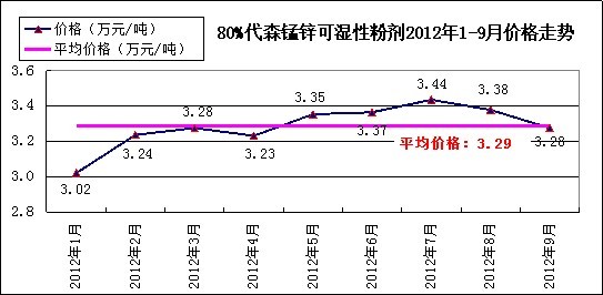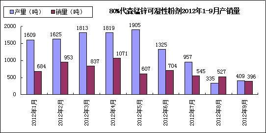 據(jù)農(nóng)藥工業(yè)網(wǎng)數(shù)據(jù)統(tǒng)計(jì),80%代森錳鋅可濕性粉劑2012年1-9月價(jià)格及產(chǎn)銷(xiāo)情況如下圖所示:
