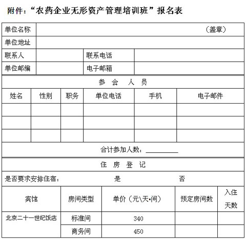 參加培訓班人員,請將報名表(參見附件)于2011年1月10日前以傳真方式發送至北京科發偉業農藥技術中心。